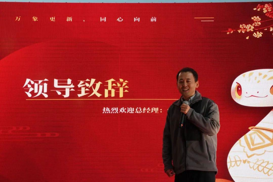年會伊始,總經(jīng)理薛總發(fā)表開幕辭。